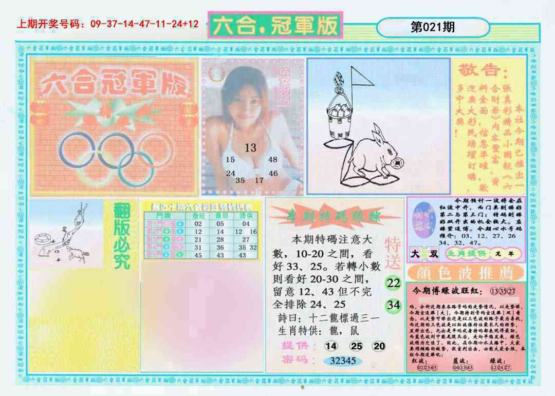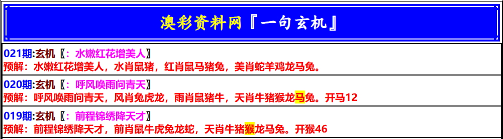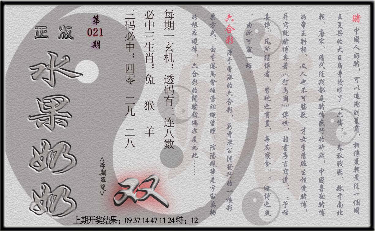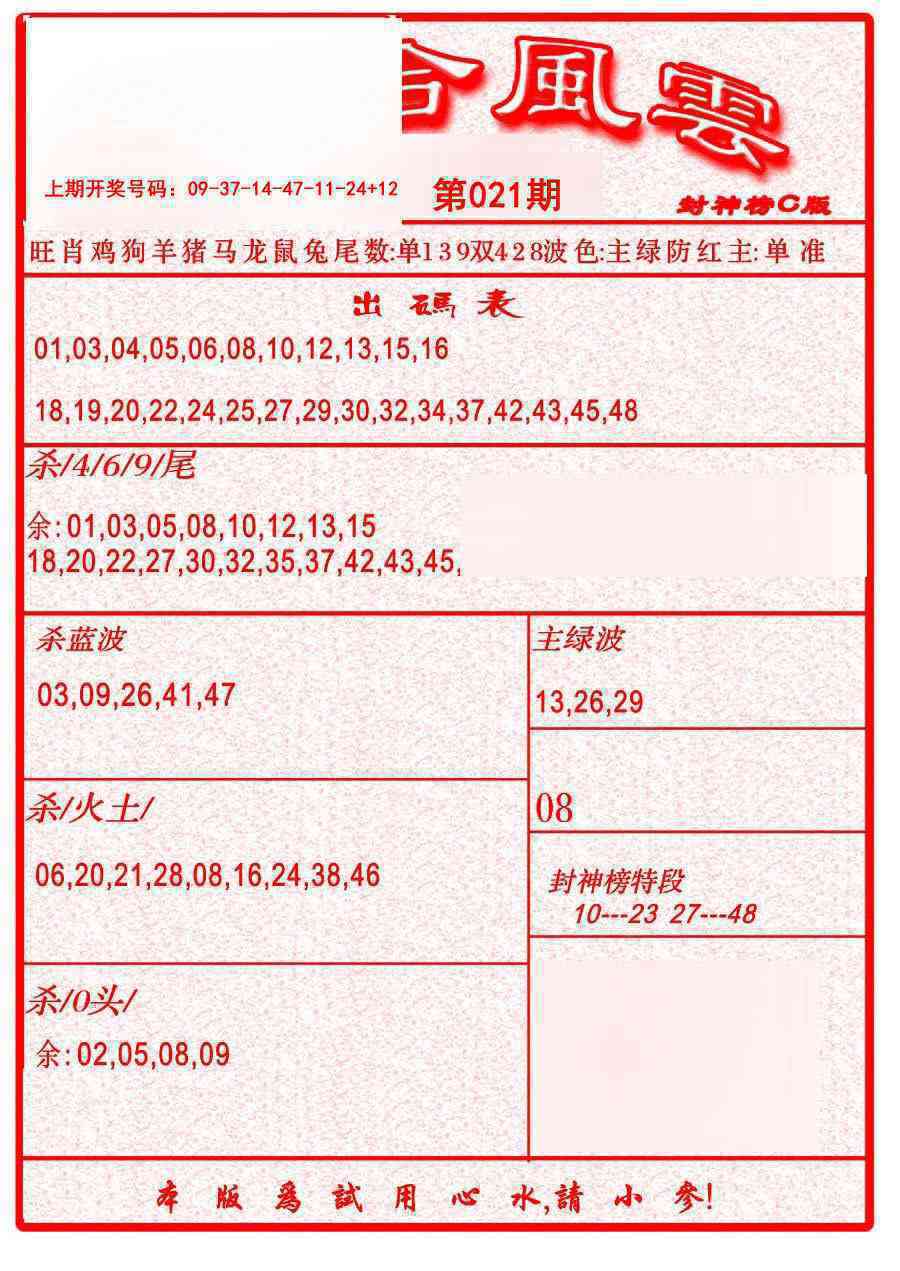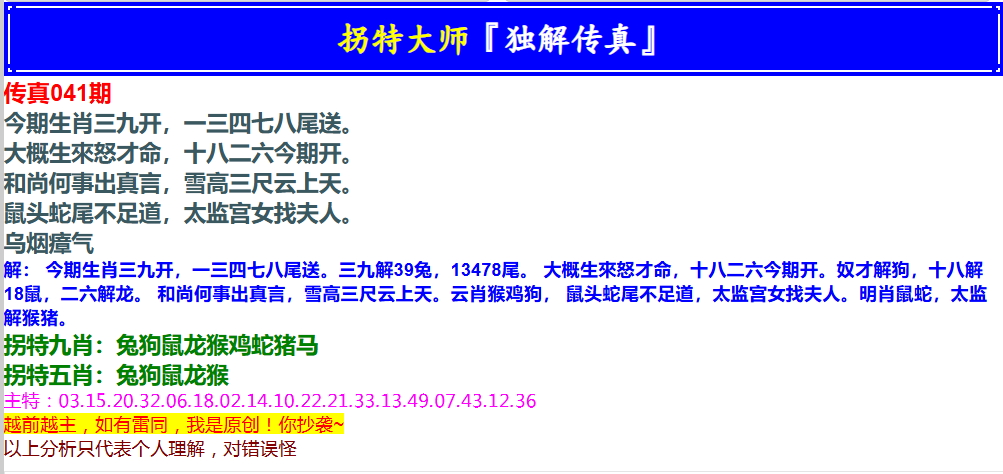 。所发布的资料属科学数理分析-开奖,走势,资料,图说,总结,均是精品资料。值得您长期跟踪。 |