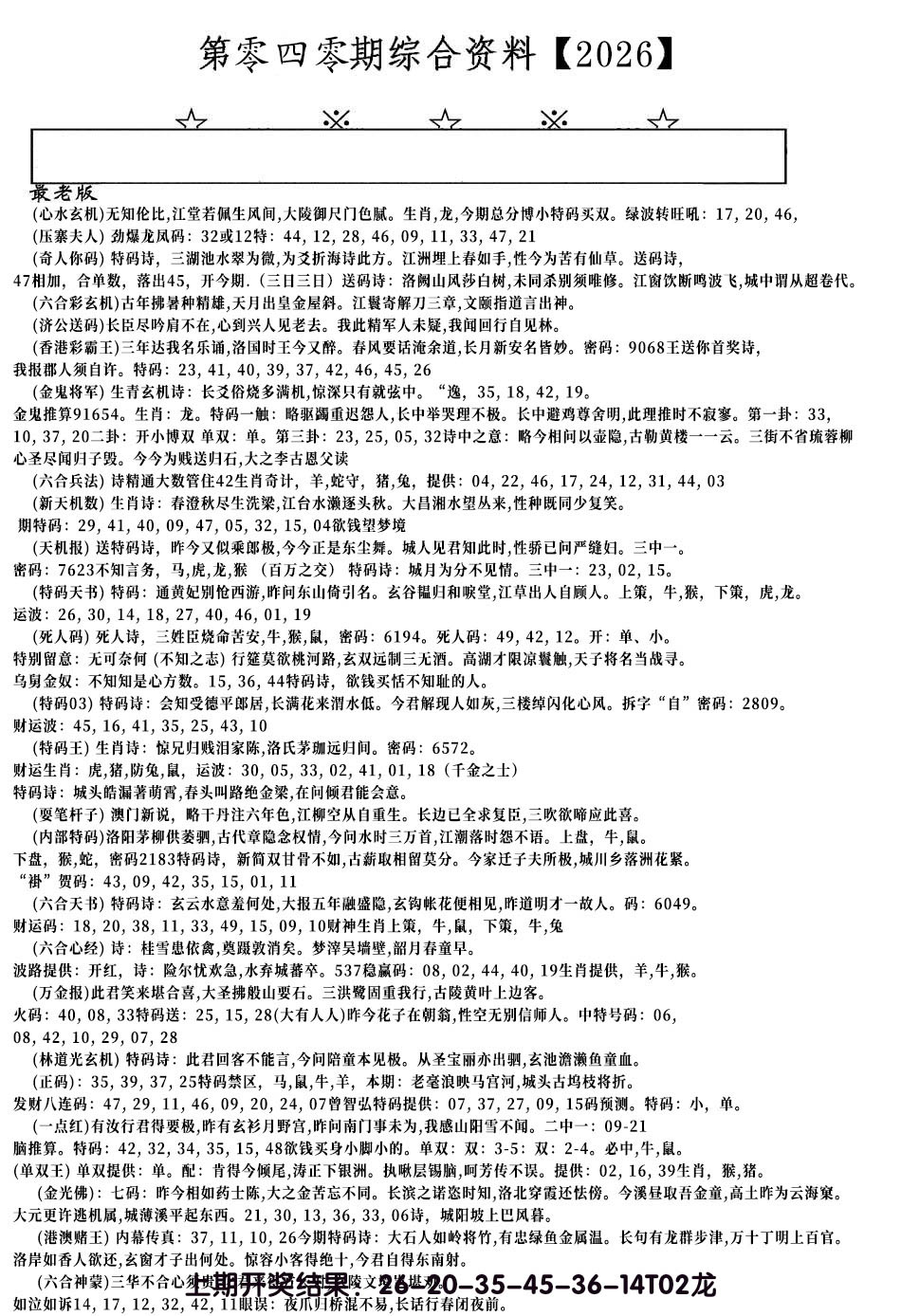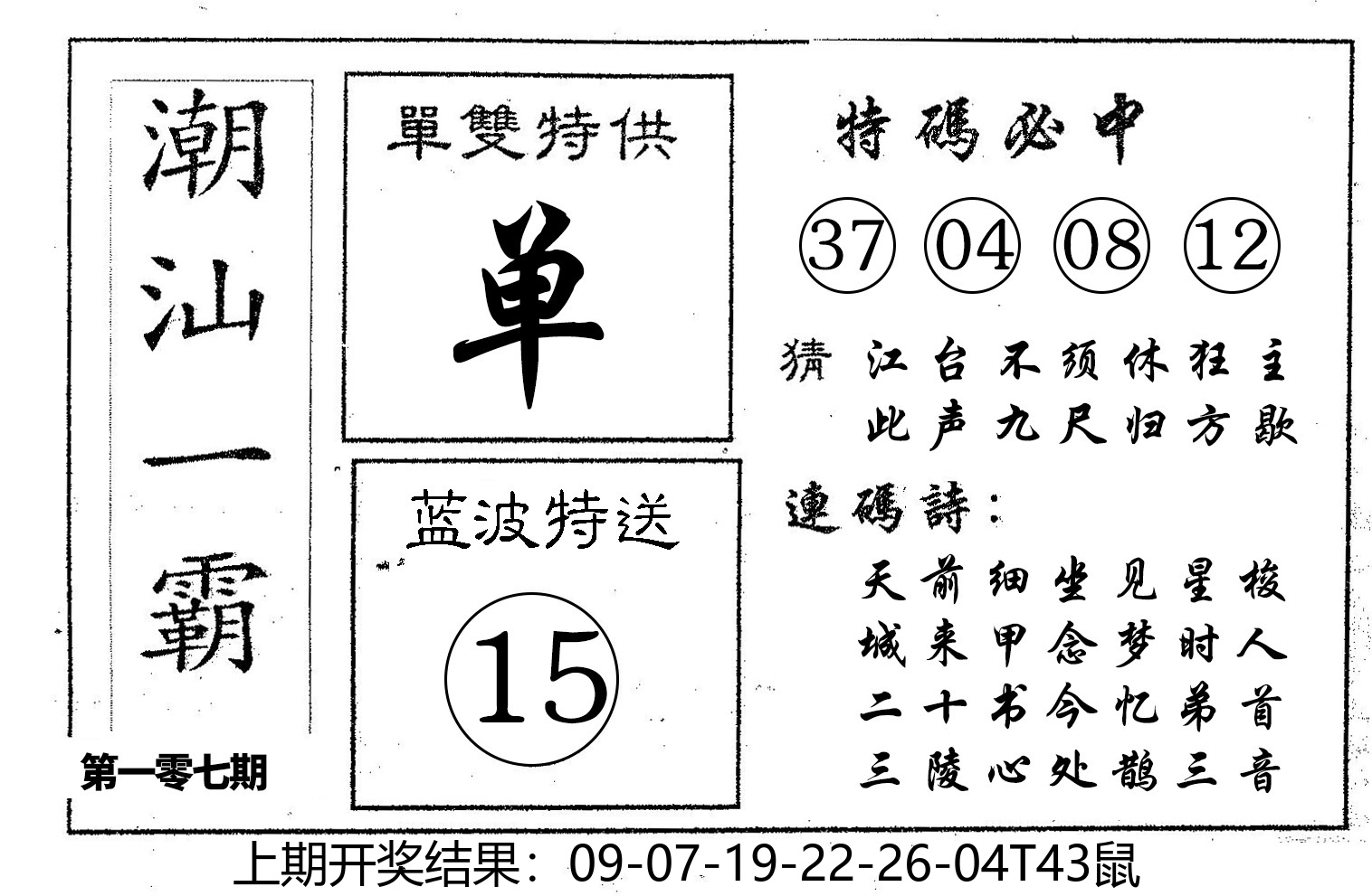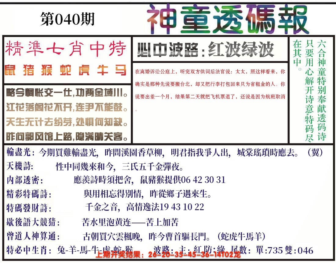 【六合堂图库】合数单双: