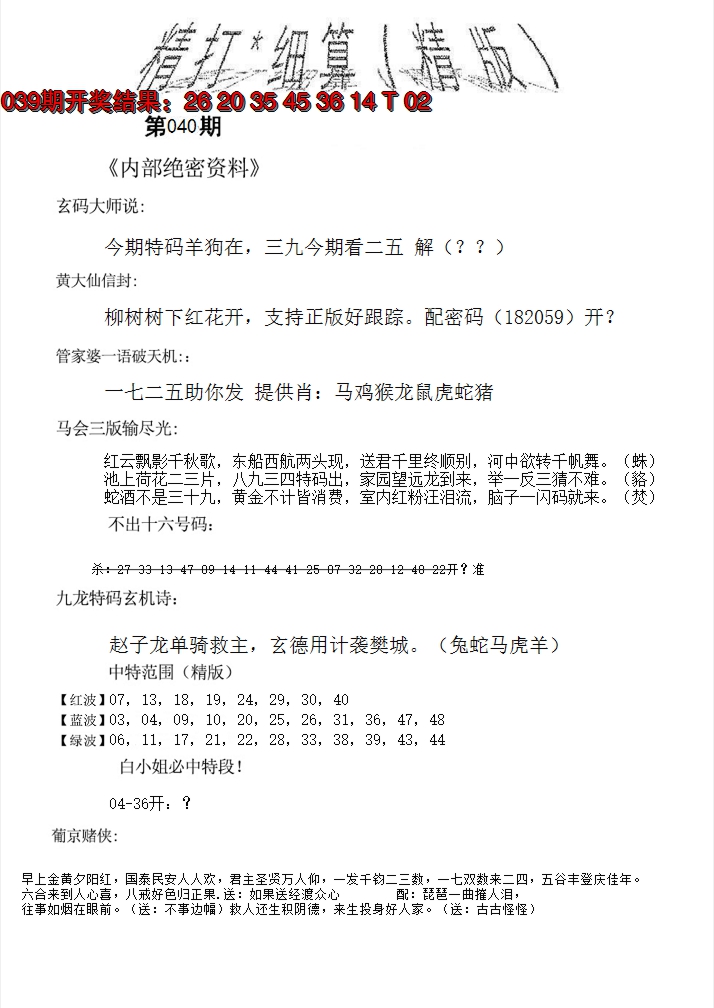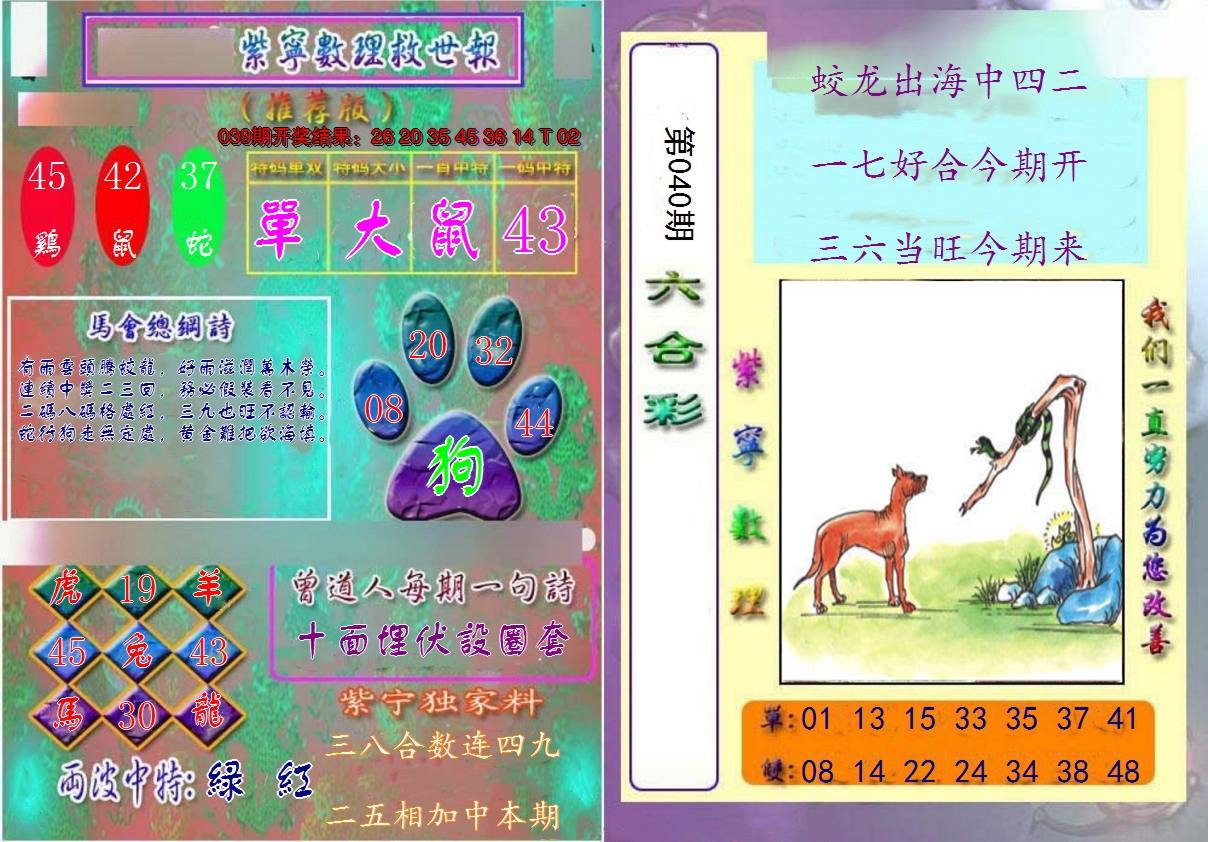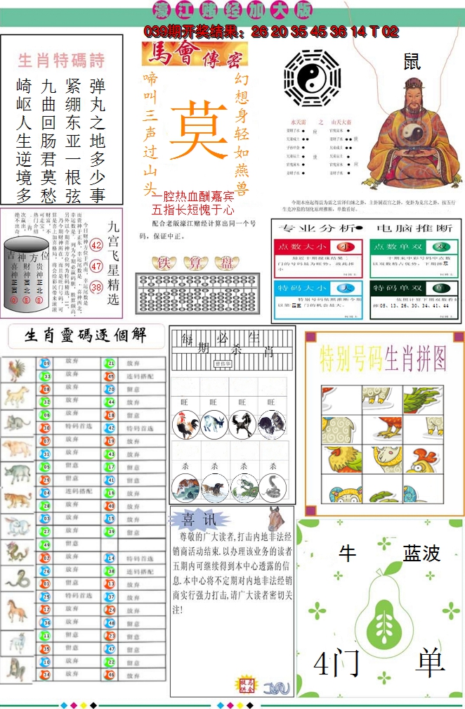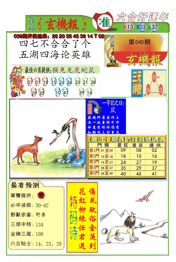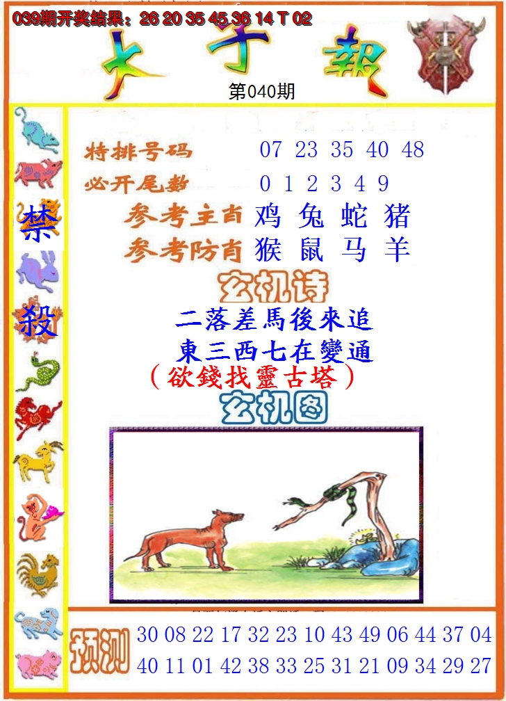01,02,09,10,23,24,31,32,39,40 鼠 冲 马 牛 冲 羊