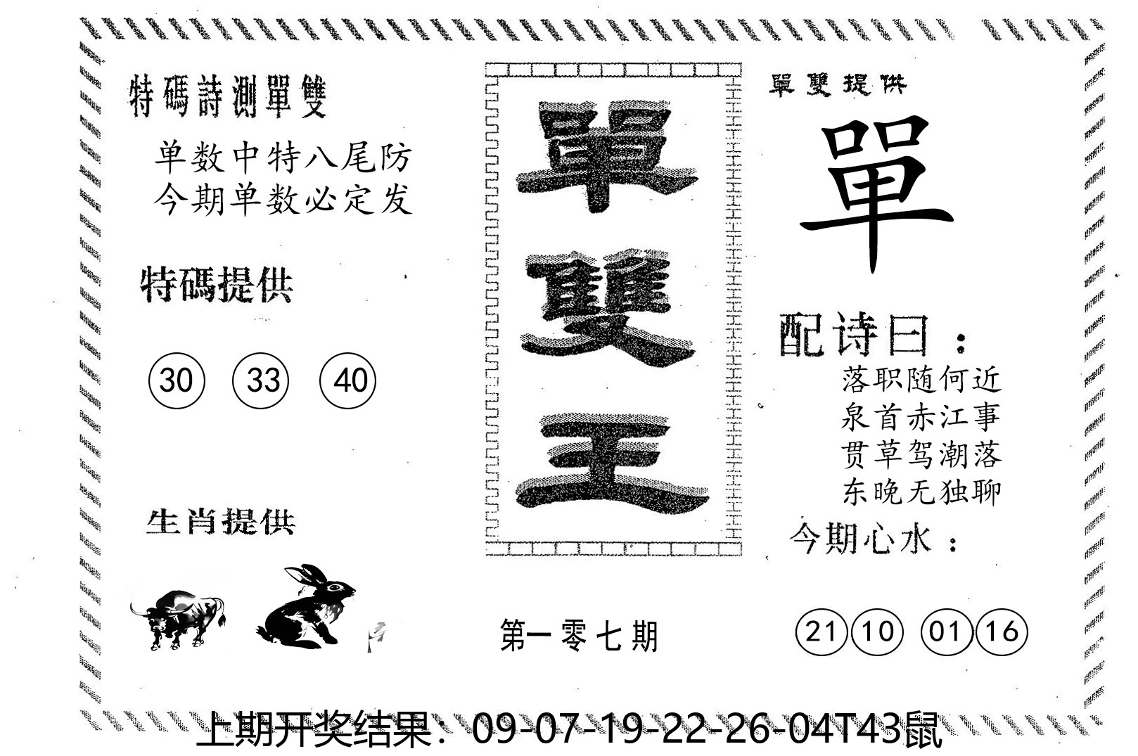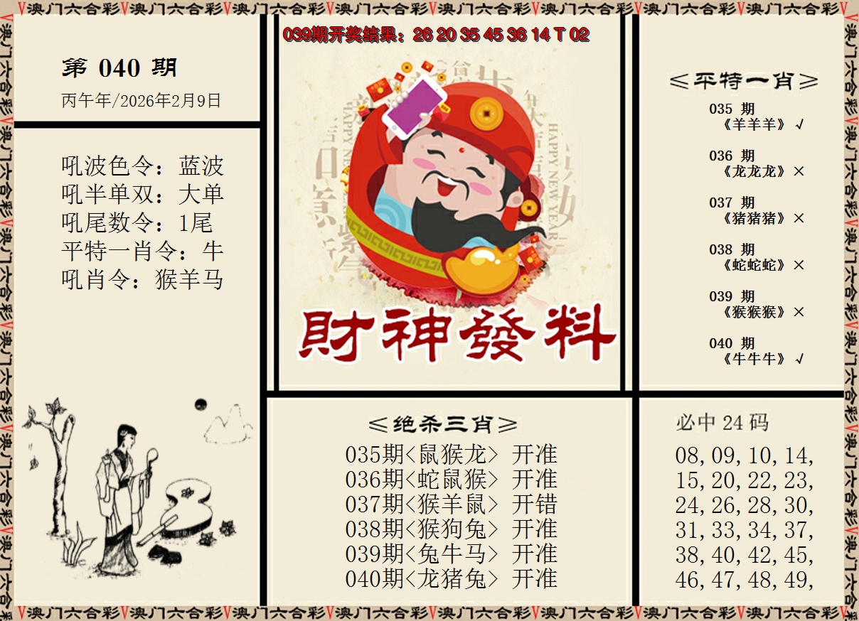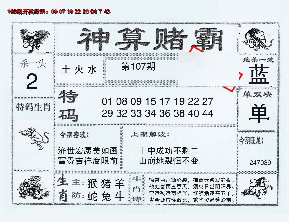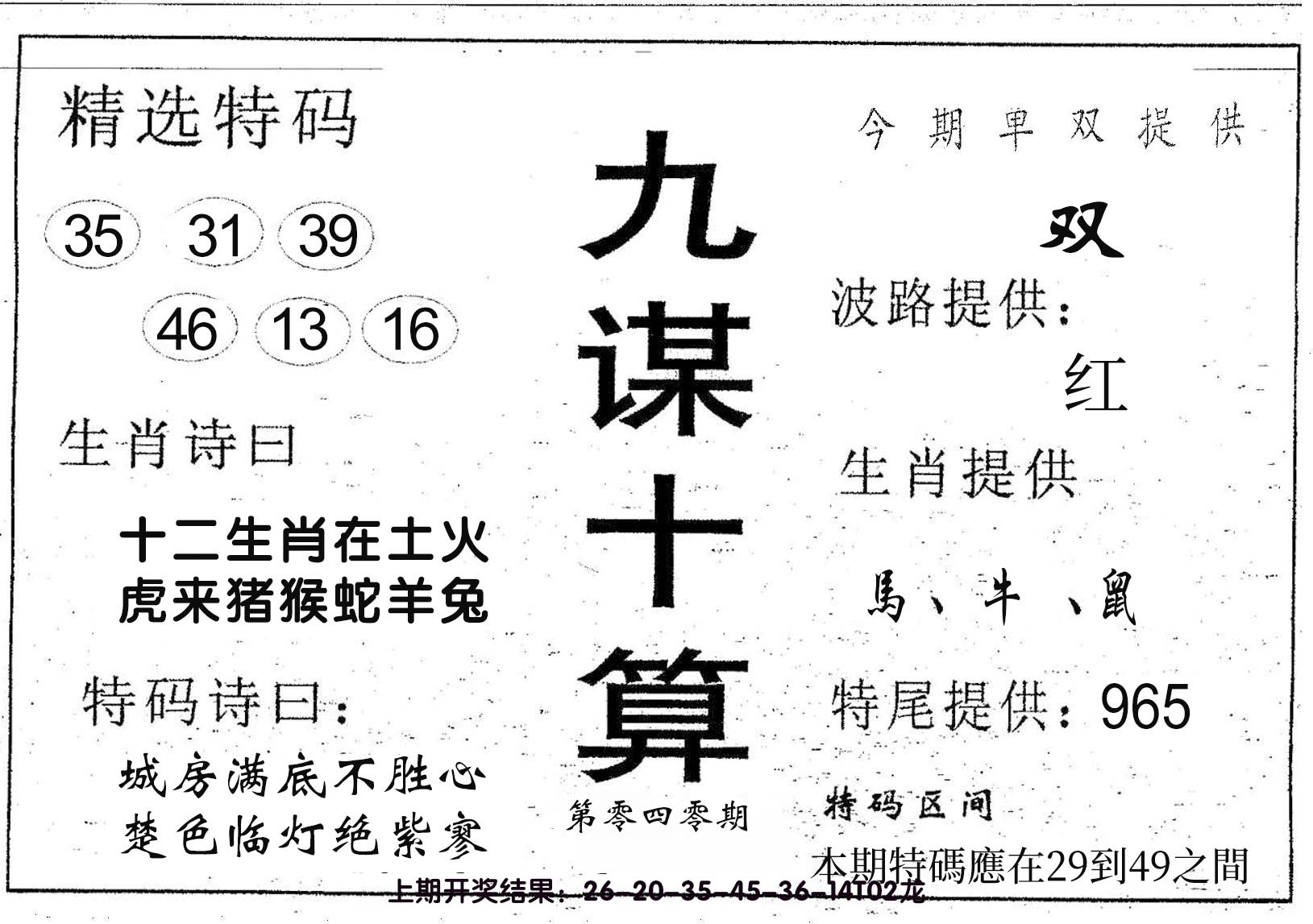 01,02,09,10,23,24,31,32,39,40 鼠 冲 马 牛 冲 羊