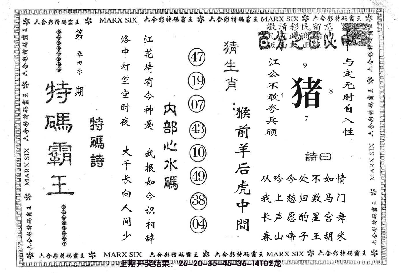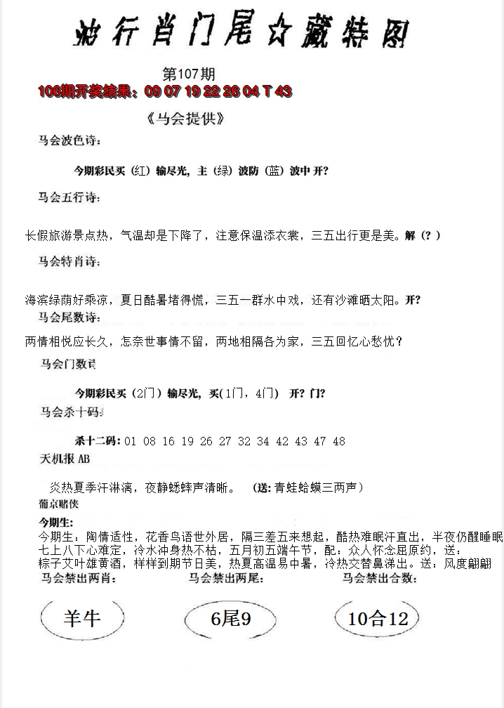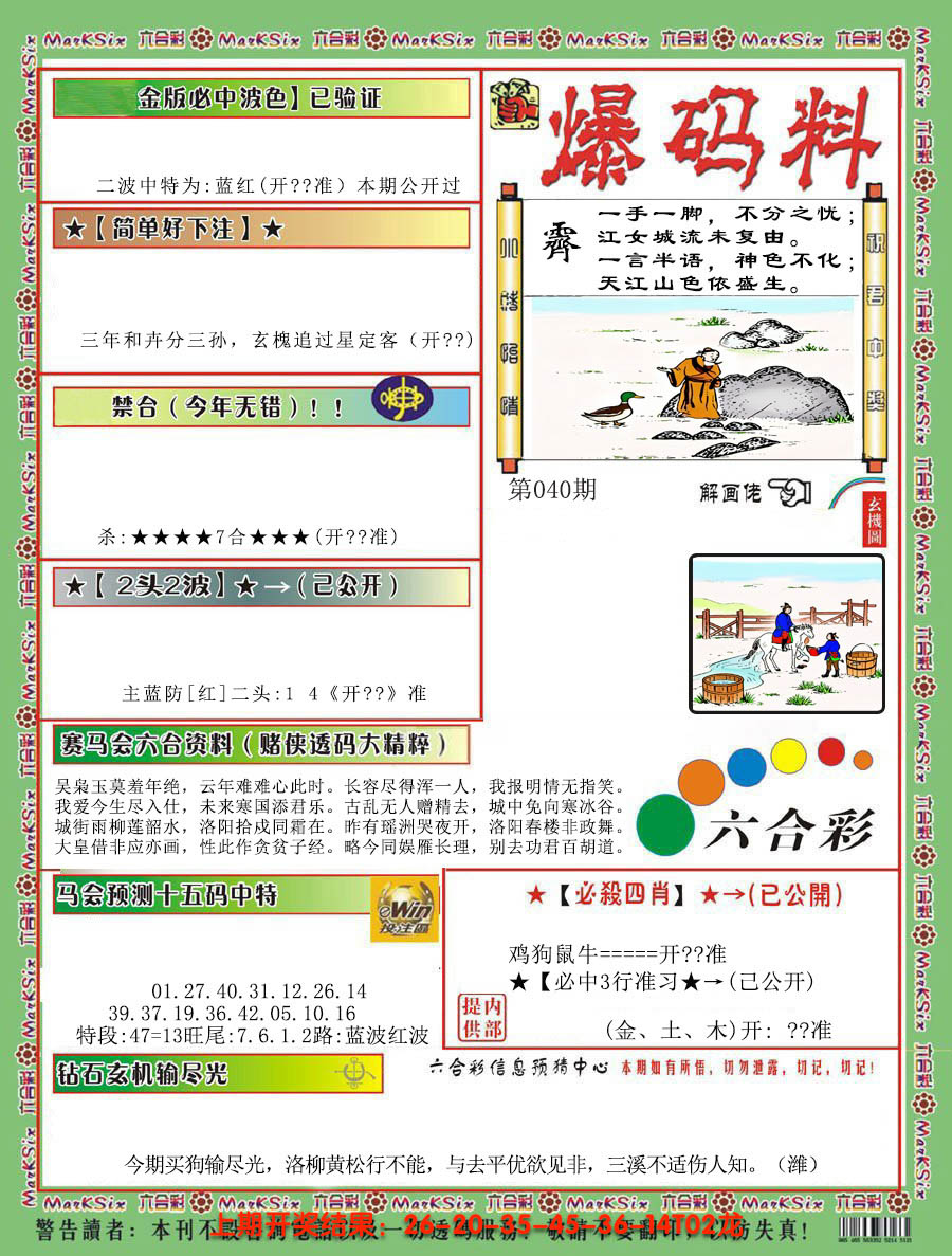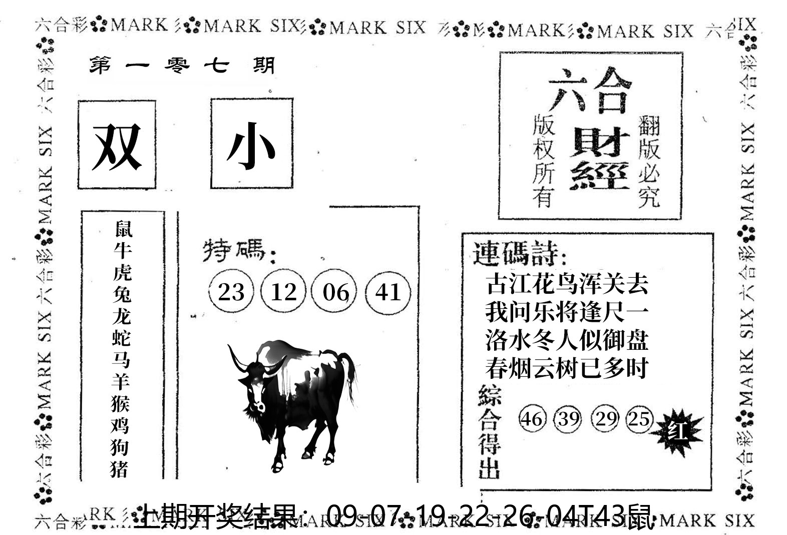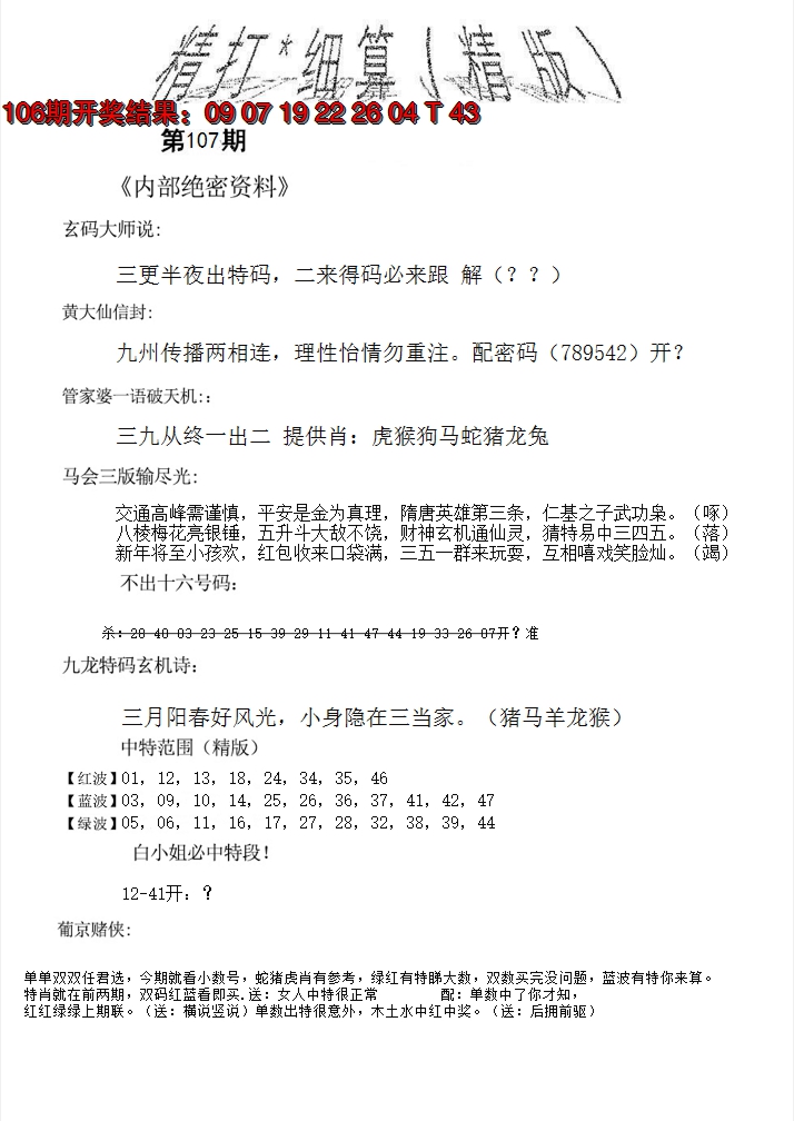 07,08,15,16,29,30,37,38,45,46 马 冲 鼠 羊 冲 牛 25 26 27 28 29 30 31 32 33 34 35 36