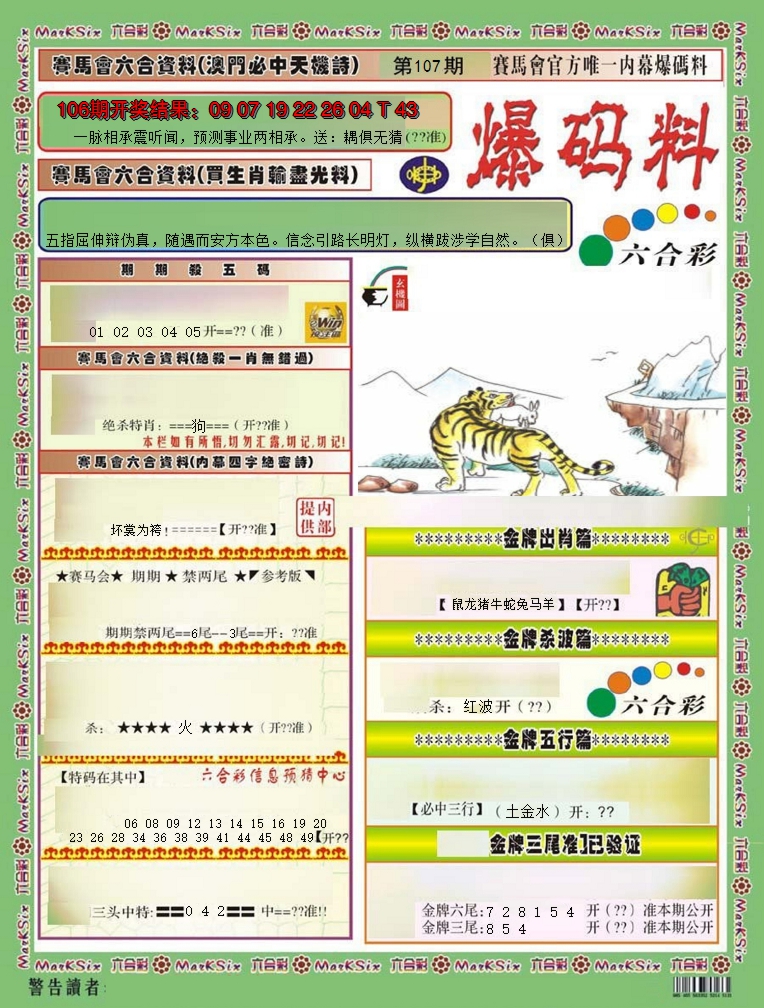 香港六合彩挂牌资料全篇