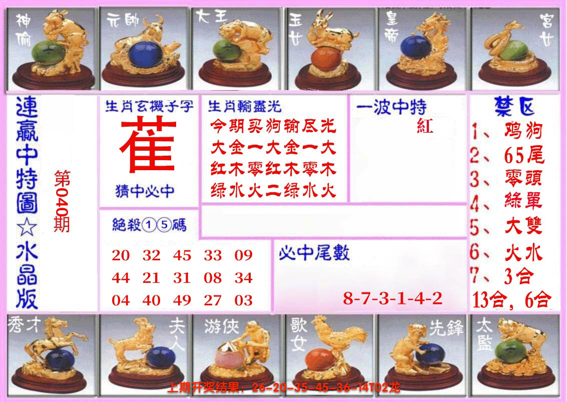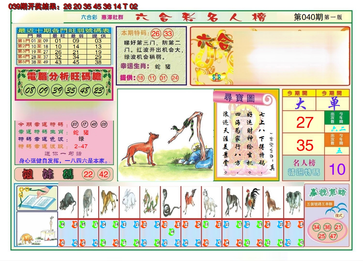 11,12,19,20,27,28,41,42,49 龙 冲 狗 蛇 冲 猪 13 14 15 16 17 18 19 20 21 22 23 24