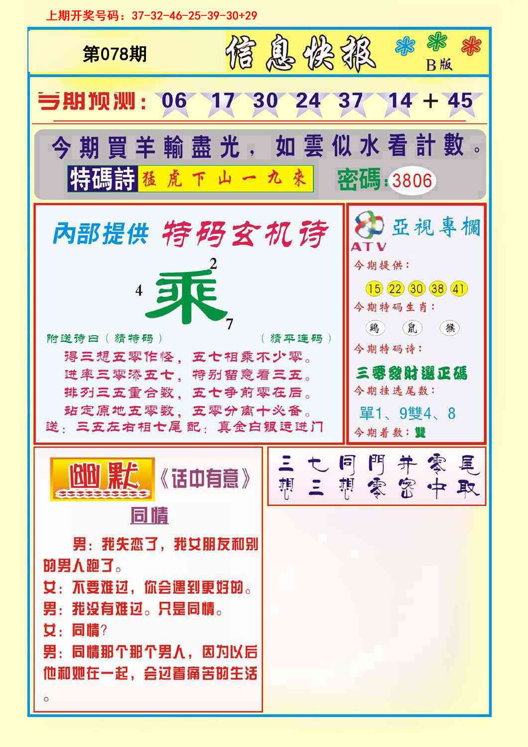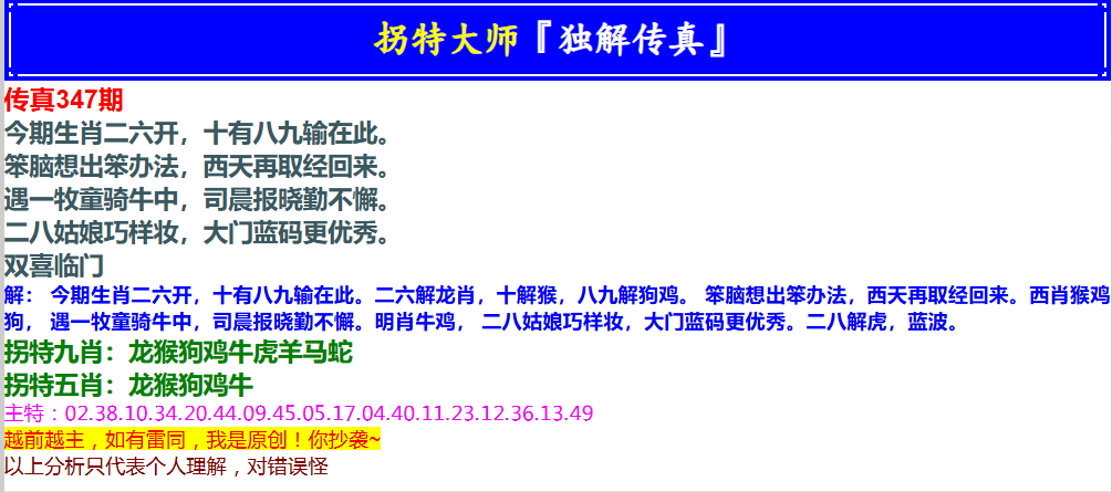 。所发布的资料属科学数理分析-开奖,走势,资料,图说,总结,均是精品资料。值得您长期跟踪。 |