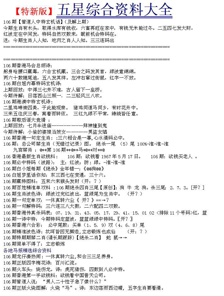 ◆◆◆◆◆◆◆◆◆◆◆ 全年资料及生肖卡