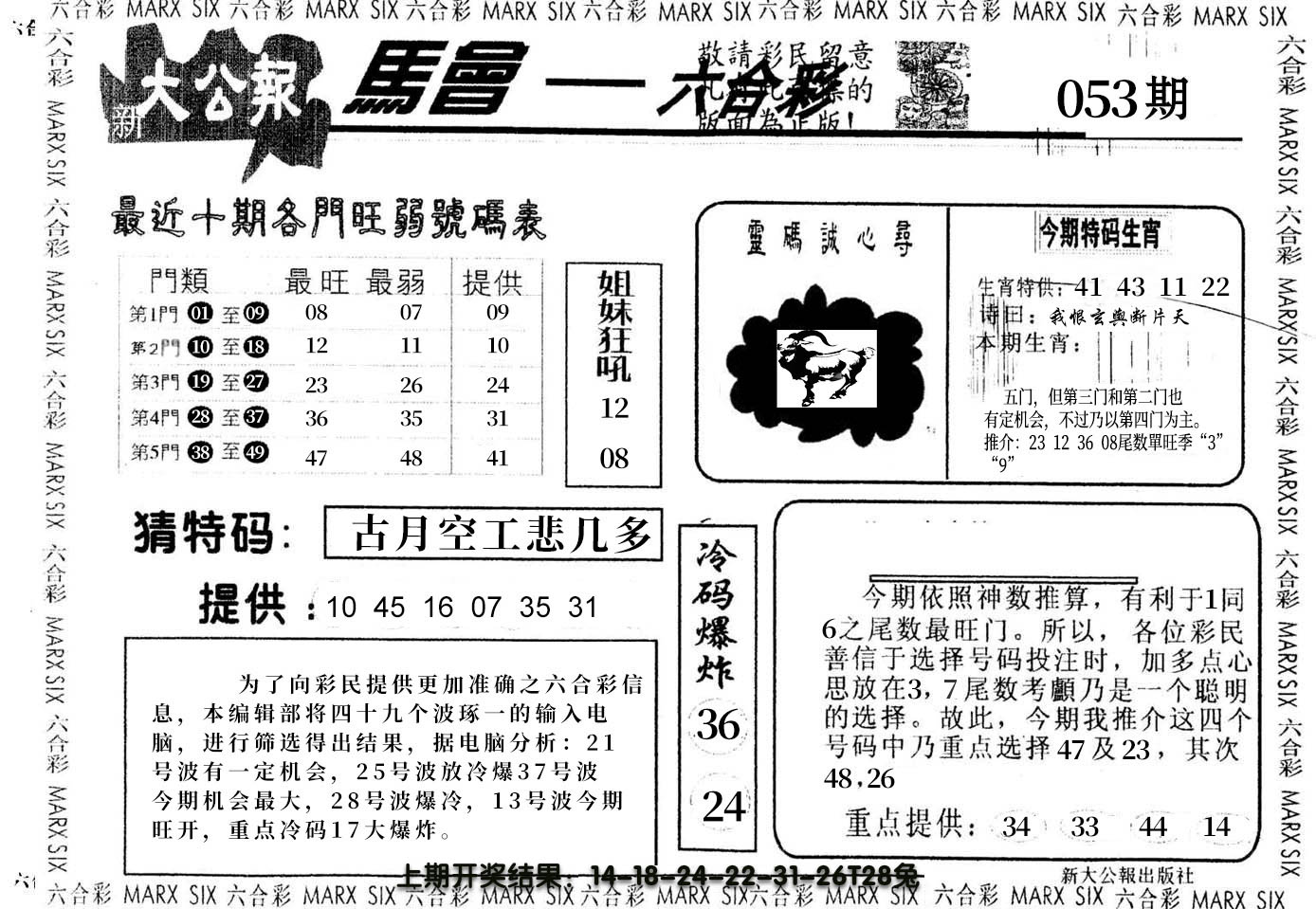 07,08,15,16,29,30,37,38,45,46 马 冲 鼠 羊 冲 牛 25 26 27 28 29 30 31 32 33 34 35 36