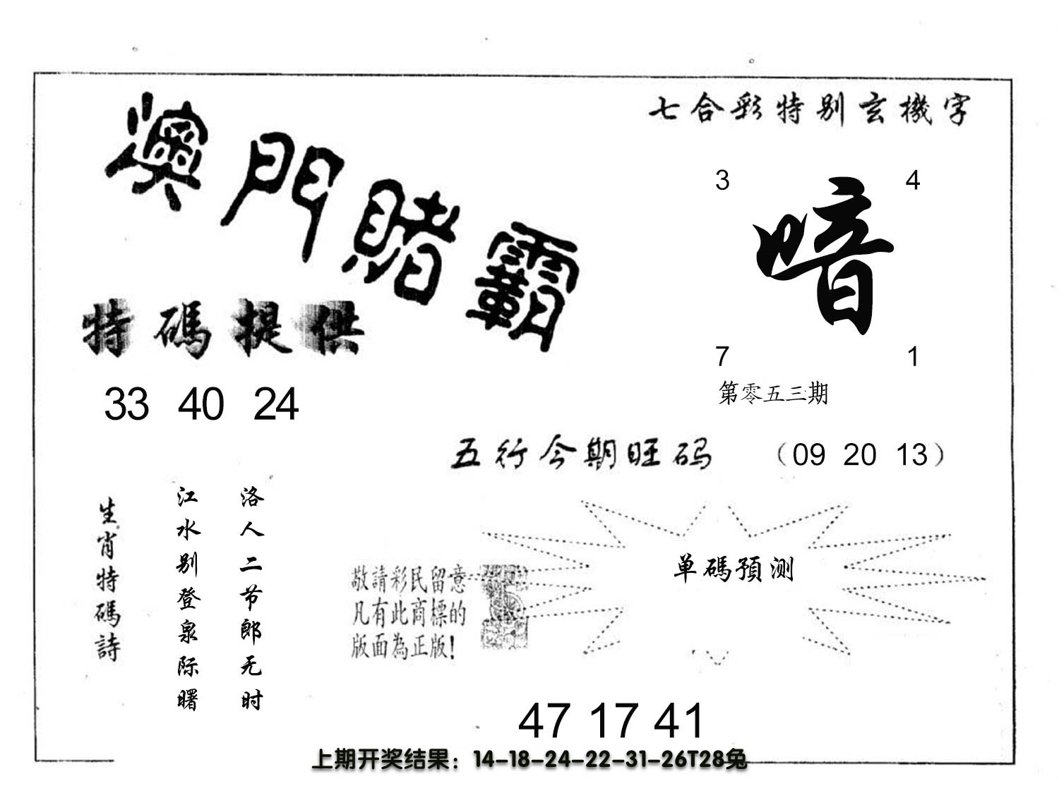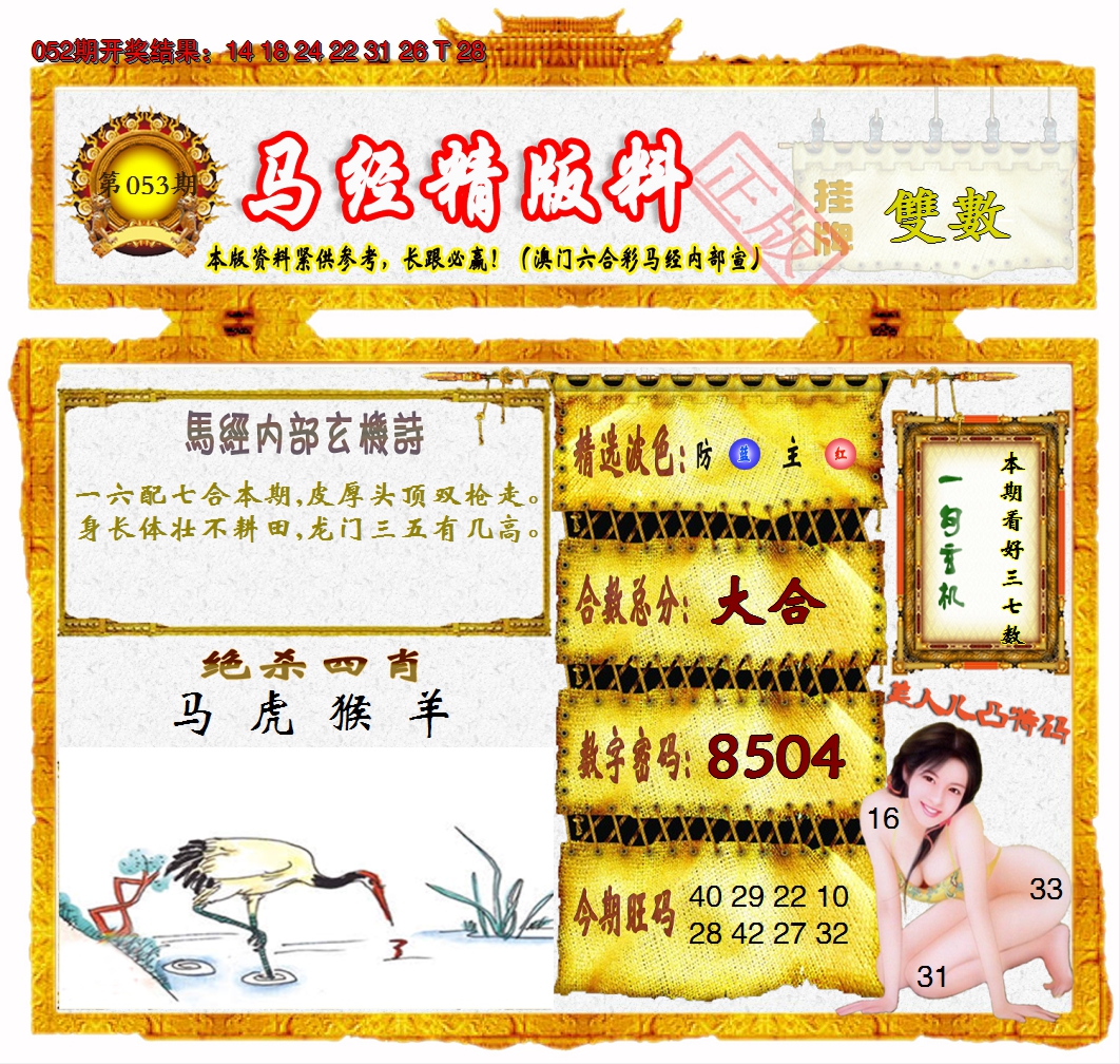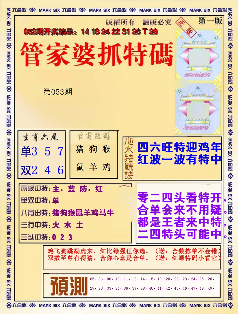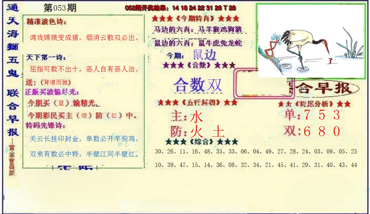 【六合堂图库】合数单双: