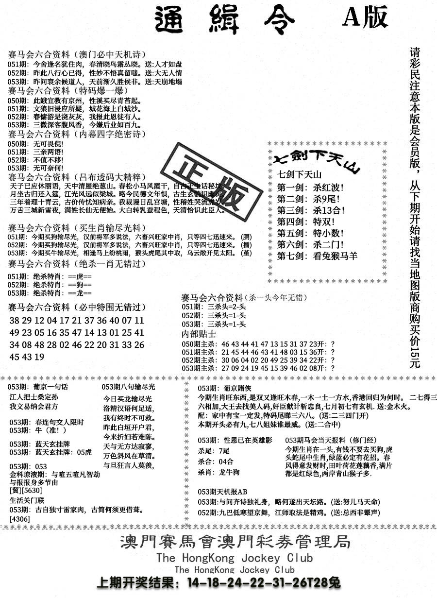 香港六合彩挂牌资料全篇