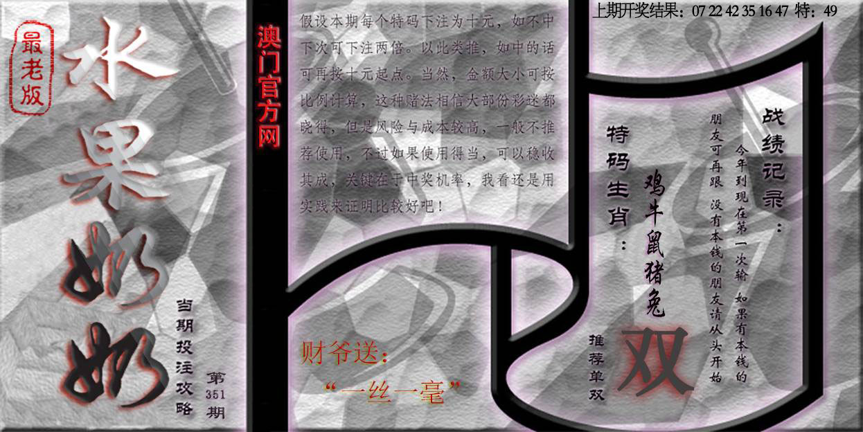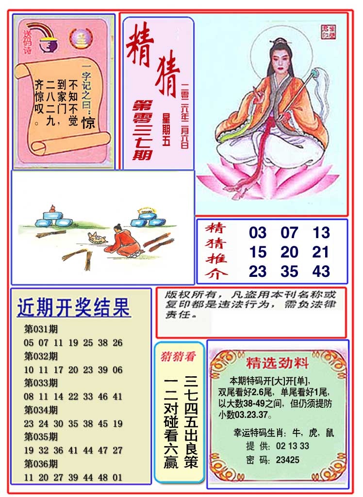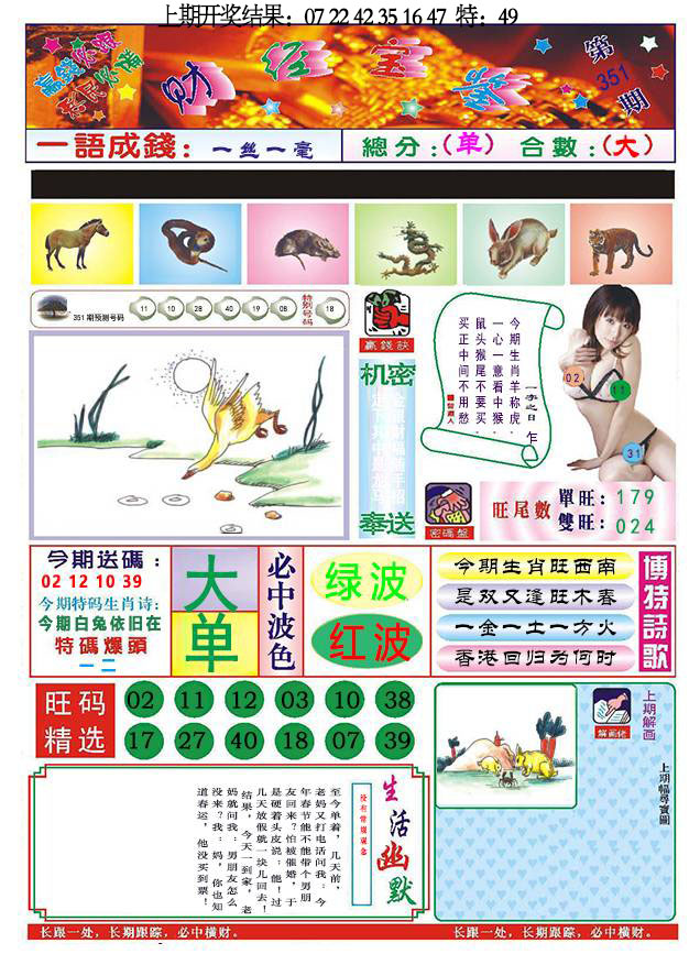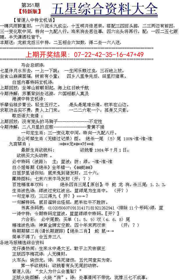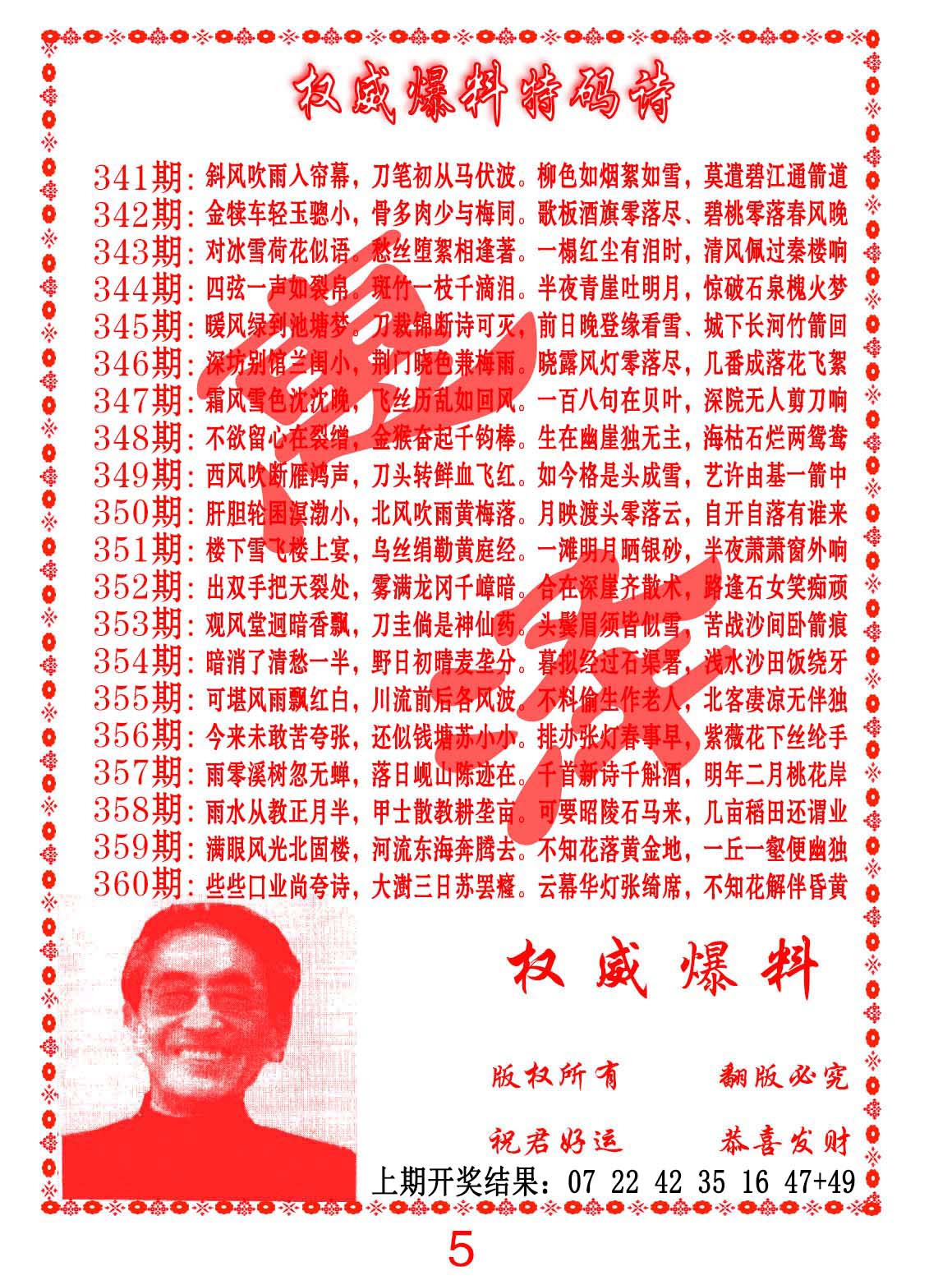 。所发布的资料属科学数理分析-开奖,走势,资料,图说,总结,均是精品资料。值得您长期跟踪。 |