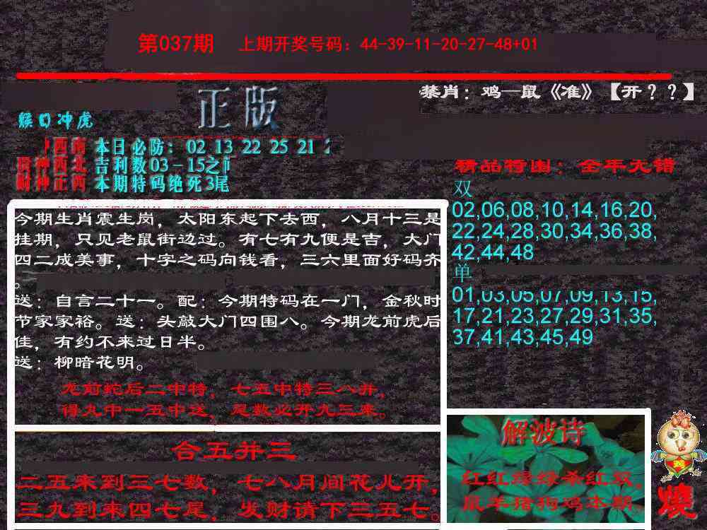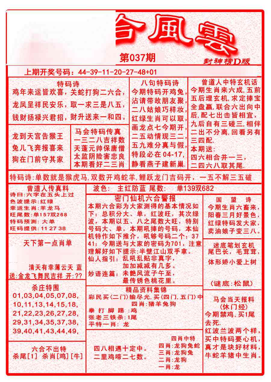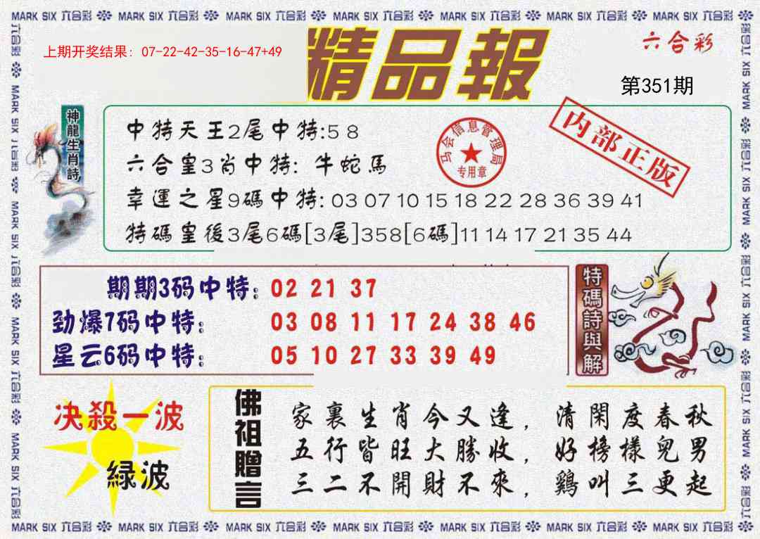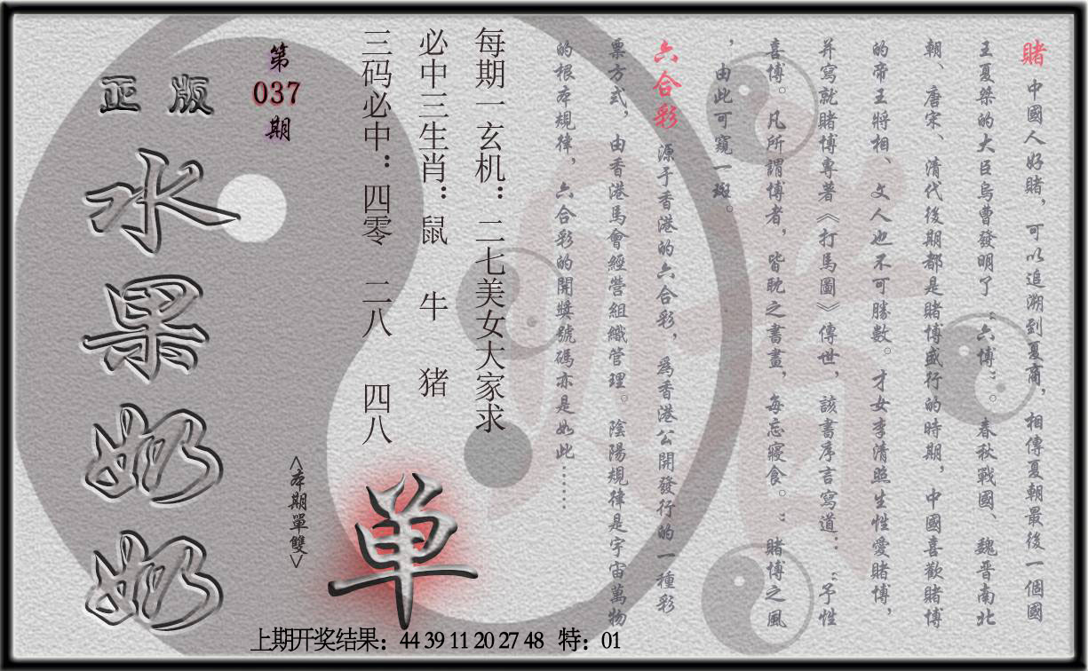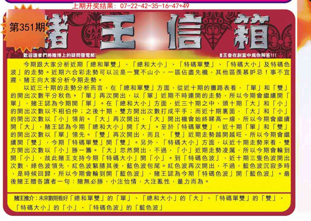 。所发布的资料属科学数理分析-开奖,走势,资料,图说,总结,均是精品资料。值得您长期跟踪。 |